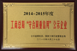 Jiacheng is honoured with "2014-2015 Enterprise of Abiding by Contract and Being Trustworthy"