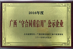 Fang Xin and Jia Cheng were awarded the publicity enterprise of "Guangxi Zhuang Autonomous Region abides by contract and respects credit" in 2017.