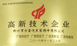 方鑫公司被评为高新技术企业