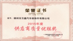 方鑫公司获得柳特2015年度供应商质量优胜奖
