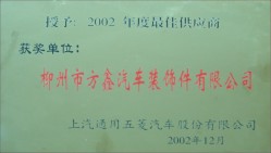 方鑫公司被SGMW评为2002年度“最佳供应商”