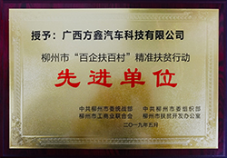 广西方鑫汽车科技有限公获评柳州市“百企扶百村”精准扶贫行动“先进单位”荣誉称号