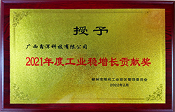 广西鑫深科技有限公司获评柳州市阳和工业新区2021年度工业稳增长贡献奖