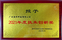 广西鑫深科技有限公司获评柳州市阳和工业新区2021年度技术创新奖
