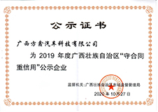 方鑫、嘉诚公司获评2017年度“广西壮族自治区守合同重信用”公示企业。