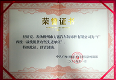 方鑫公司荣获东风柳州汽车有限公司“2010年度协作配套产品先进供应商”荣誉称号