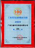 威斯尼斯人app官方获评获评2020广西民营企业制造业100强第35位荣誉称号
