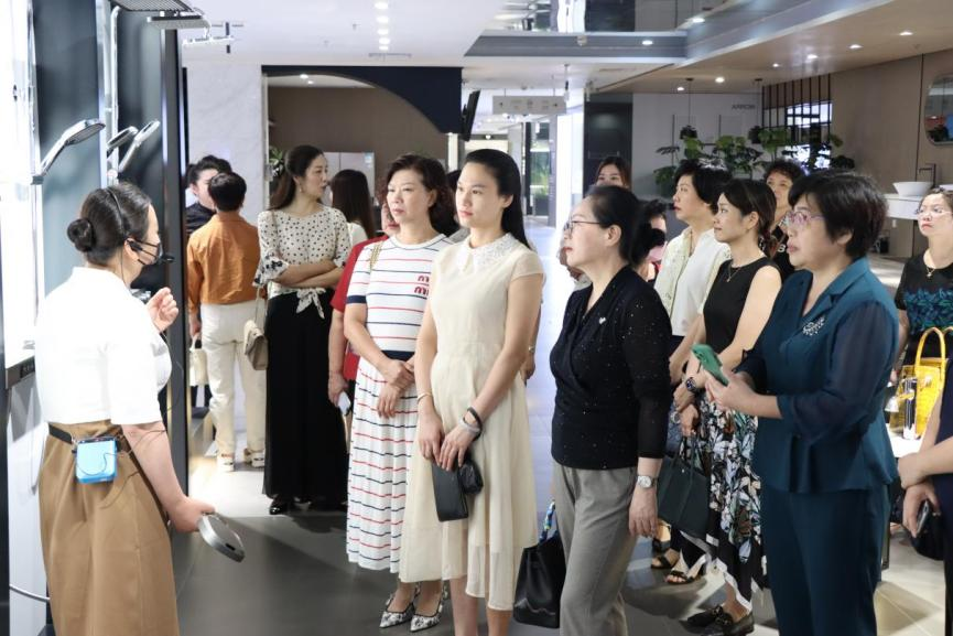 广东省女企业家协会嘉宾在讲解人员的带领下参观箭牌家居集团展厅及体验研究中心,了解箭牌家居集团的企业发展历程,体验行业前沿高新科技,领会智能家居的魅力。